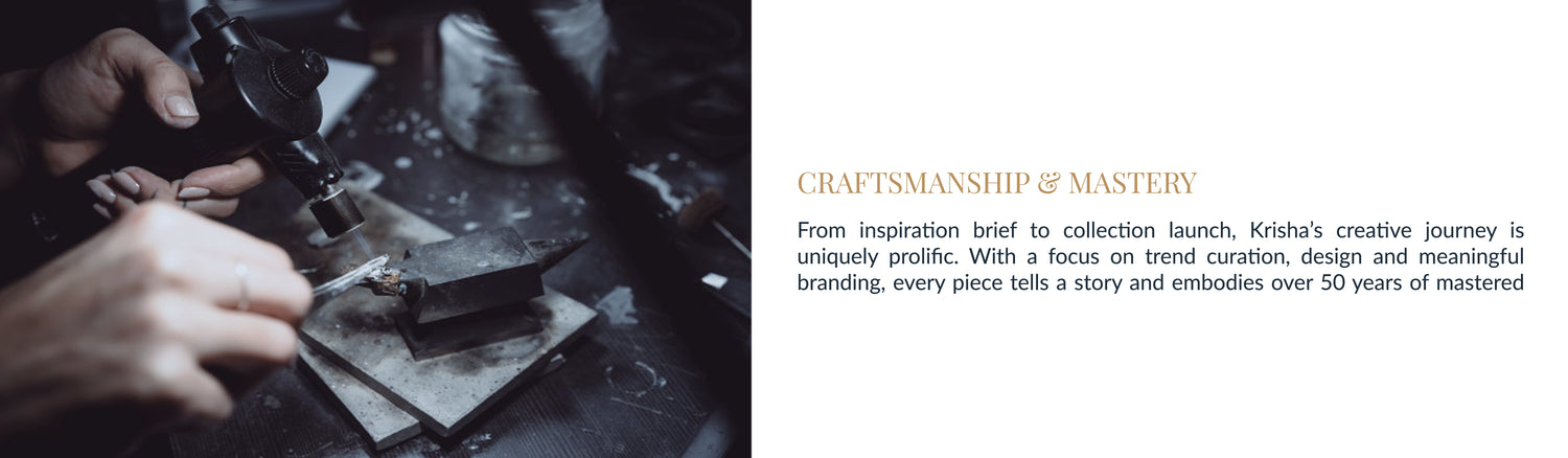 KRISHA is a luxurious jewellery brand driven by its Founder and CEO Ms. Sakshi Shrimal, with an enduring passion for innovation and design. Krisha combines elegant designs with premium quality materials resulting in luxurious jewellery which adds that touch of missing sophistication and fashion back into your life!